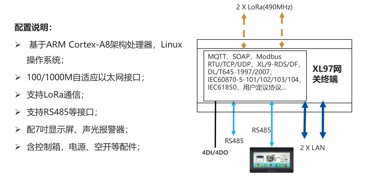 XL971E67網(wǎng)關(guān)終端,是集成XL95物聯(lián)網(wǎng)關(guān),7吋顯示屏、聲光報警器,及電源、開關(guān)、控制箱等等的物聯(lián)網(wǎng)接收終端,讓客戶安裝使用更加方便。