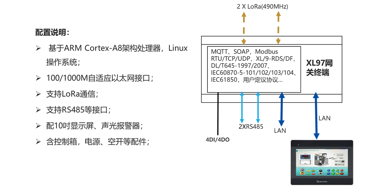 XL971E6A網(wǎng)關(guān)終端,是集成XL95物聯(lián)網(wǎng)關(guān),10吋顯示屏、聲光報(bào)警器,及電源、開關(guān)、控制箱等等的物聯(lián)網(wǎng)接收終端,讓客戶安裝使用更加方便。