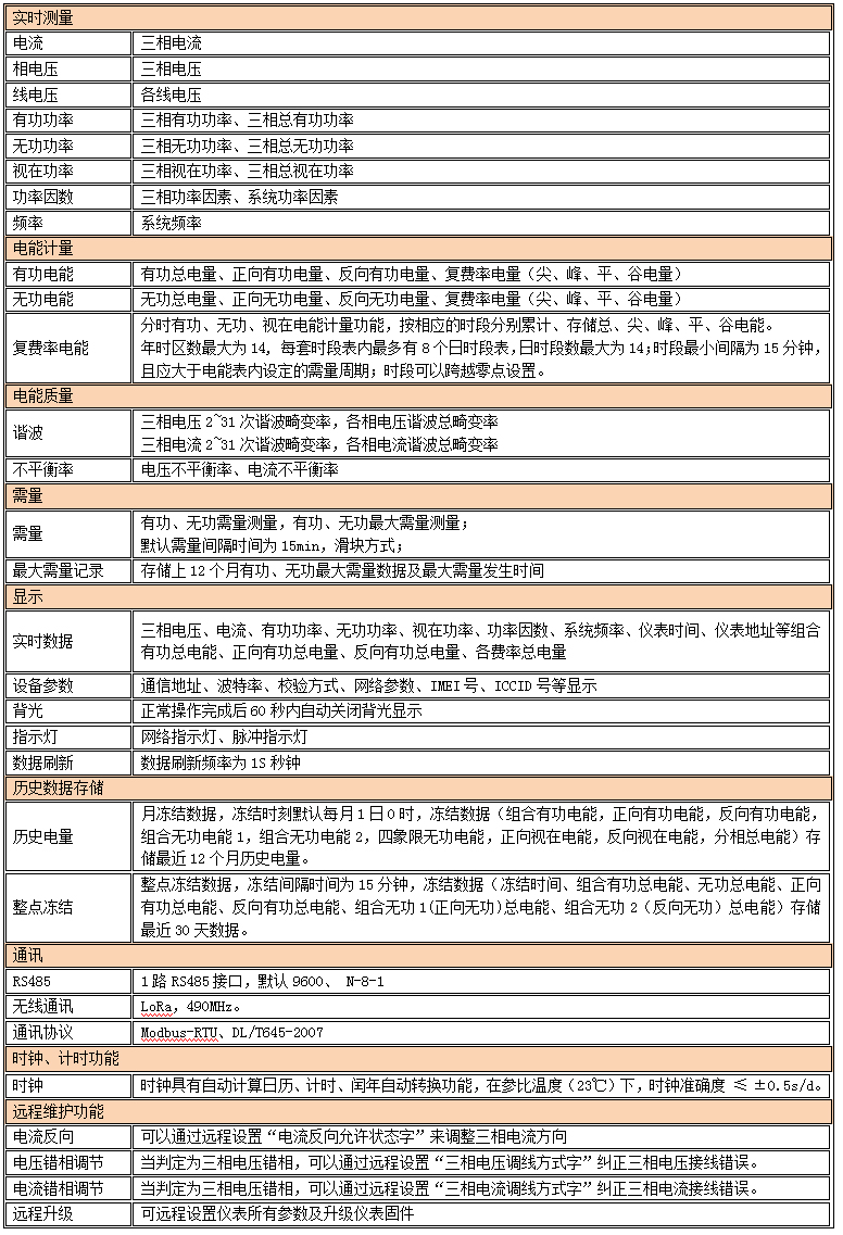 2、支持RS485,和LoRa通信方式,支持Modbus RTU和DLT 645通信協(xié)議;