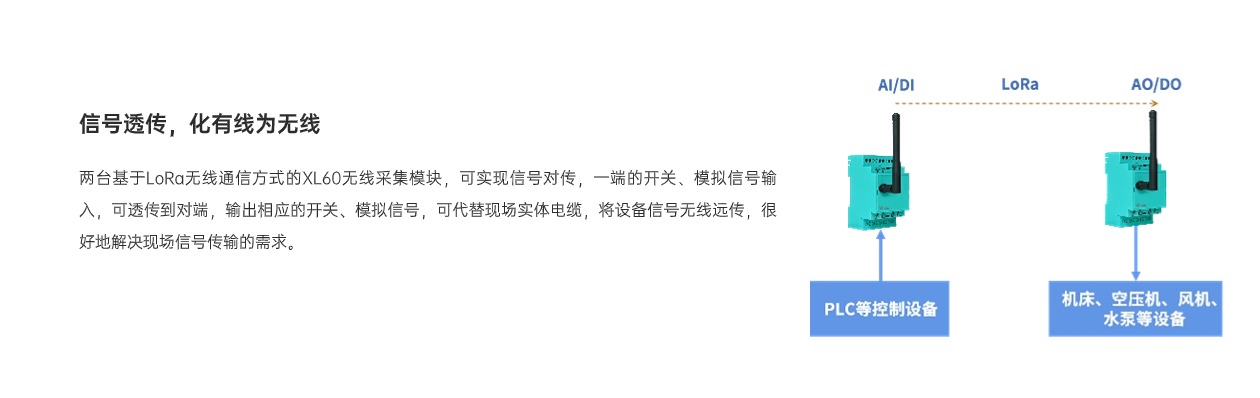 兩臺XL60采集裝置可實現(xiàn)信號對傳,一端的開關(guān)、模擬信號輸入,可透傳到另一端,輸出相應(yīng)的開關(guān)、模擬信號,很好地解決了現(xiàn)場信號傳輸?shù)男枨蟆?/span>