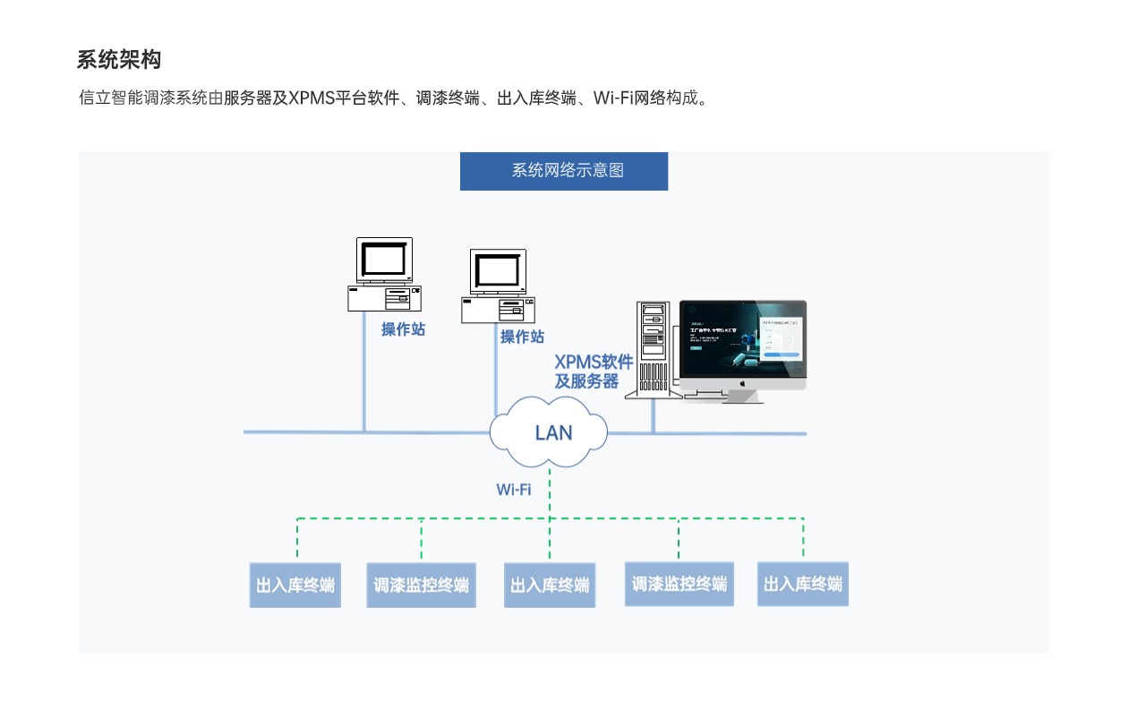 信立調(diào)漆管控系統(tǒng)XPMS,應(yīng)用工業(yè)物聯(lián)網(wǎng)技術(shù)、數(shù)據(jù)庫及智能化平臺軟件,標準、規(guī)范、指導(dǎo)、監(jiān)管調(diào)漆過程,實現(xiàn)調(diào)漆操作智能化、簡單化,有效提升調(diào)漆質(zhì)量、減少漆料浪費,降低人為因素風險,是一套智能化的調(diào)漆、制漆管控系統(tǒng)。