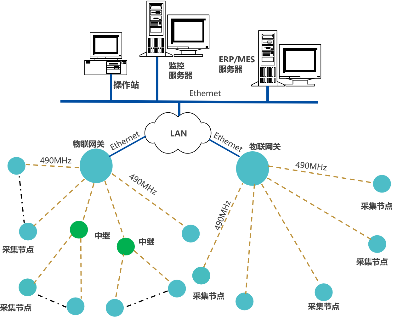 網(wǎng)關(guān)通過Ethernet接入企業(yè)內(nèi)部LAN,推送數(shù)據(jù),至企業(yè)生產(chǎn)監(jiān)控平臺(tái)
