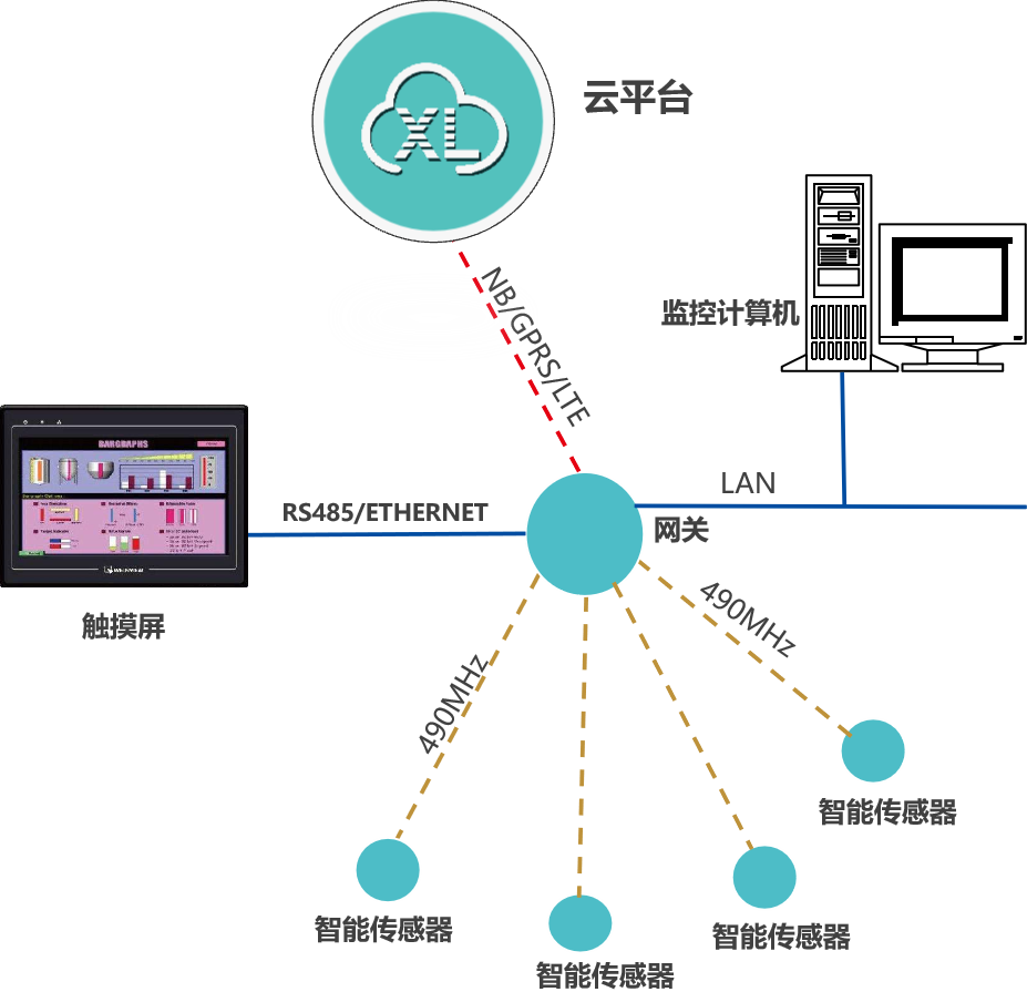 XL90,將數(shù)據(jù)上傳給企業(yè)內(nèi)部的多個(gè)系統(tǒng)軟件平臺(tái);通過(guò)LTE(4g)/NB/GPRS將數(shù)據(jù)上傳至云服務(wù)器