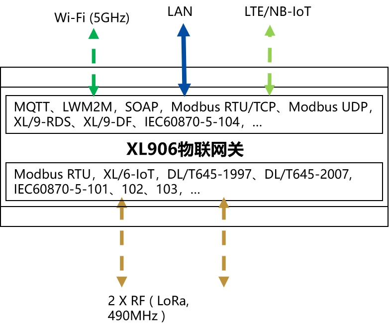 物聯(lián)網(wǎng)關(guān),通過(guò)以太網(wǎng),或NB/GPRS/LTE聯(lián)接云端,支持MQTT,LWM2M,XL/6-IoT協(xié)議,或用戶指定協(xié)議