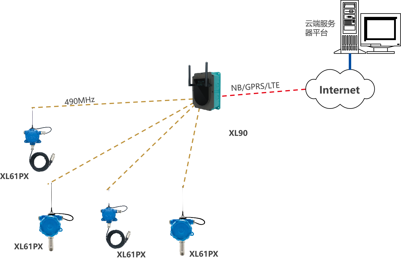 選擇XL90物聯(lián)網(wǎng)關(guān),無(wú)線讀取監(jiān)測(cè)點(diǎn)的數(shù)據(jù),進(jìn)行協(xié)議、通訊轉(zhuǎn)換后,推送至上層軟件平臺(tái)
