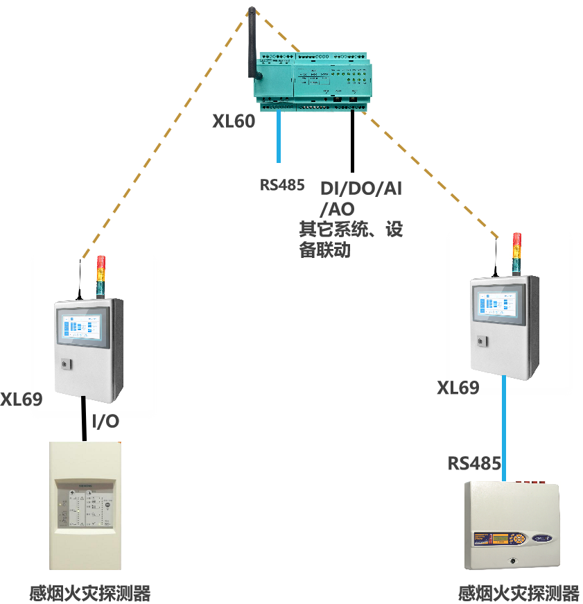 XL69智能終端,直接采集感煙探測器的信號,無線上傳,遠(yuǎn)程測試、復(fù)位煙霧探測器;