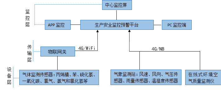 工業(yè)化工園區(qū)生產(chǎn)安全監(jiān)控系統(tǒng)采用分層拓?fù)浣Y(jié)構(gòu),分為設(shè)備采集層、傳輸層、監(jiān)控層等。