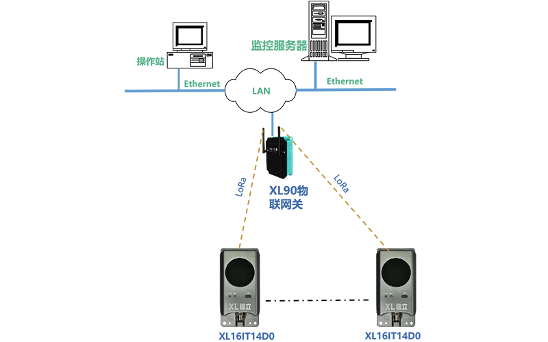 XL90或XL95物聯(lián)網(wǎng)關(guān)作為無線接收端,進(jìn)行協(xié)議轉(zhuǎn)換,數(shù)據(jù)轉(zhuǎn)發(fā)。