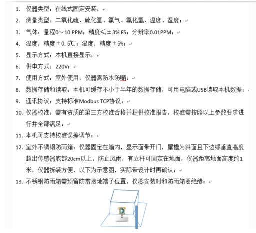 1、按技術要求,氣體傳感器、二氧化硫、硫化氫、氯氣、氯化氫等技術參數(shù)都達到如下要求: