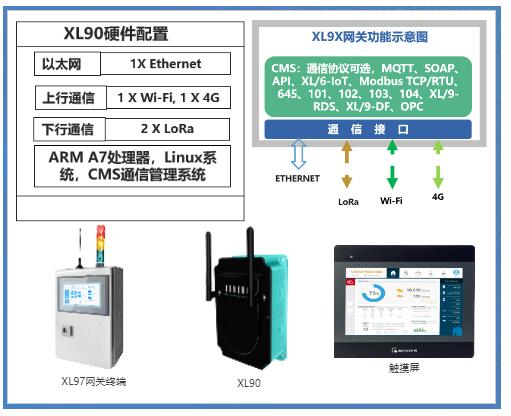 XL90物聯(lián)網(wǎng)關(guān):支持兩路LoRa通信,可以分別配置成對上或?qū)ο峦ㄐ牛痪W(wǎng)關(guān)支持Ethernet、4g、Wi-Fi通信,可同時(shí)向多個(gè)系統(tǒng)轉(zhuǎn)發(fā)數(shù)據(jù)。