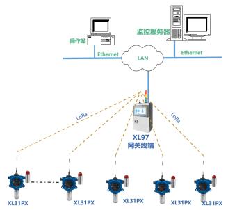 采用LoRa無線傳輸技術,選擇XL90系列網(wǎng)關作為無線接收端,進行協(xié)議轉(zhuǎn)換,數(shù)據(jù)轉(zhuǎn)發(fā)。