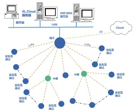 DTSD3366XX/XL無線多功能電能表獲取數(shù)據(jù),通過LoRa無線傳輸方式上傳至XL90網(wǎng)關(guān);XL90網(wǎng)關(guān)計(jì)算分析讀取的能耗數(shù)據(jù),并通過Ethernet、Wi-Fi、4G等通信方式,將數(shù)據(jù)上傳至XLSCADA平臺(tái)。