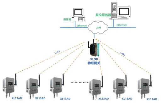 網(wǎng)絡層:XL13AD差壓傳感器通過LoRa無線傳輸數(shù)據(jù)至XL906物聯(lián)網(wǎng)關或XL97網(wǎng)關終端,網(wǎng)關可選Ethernet、Wi-Fi、4G等多種方式將差壓數(shù)據(jù)傳輸至監(jiān)控平臺。