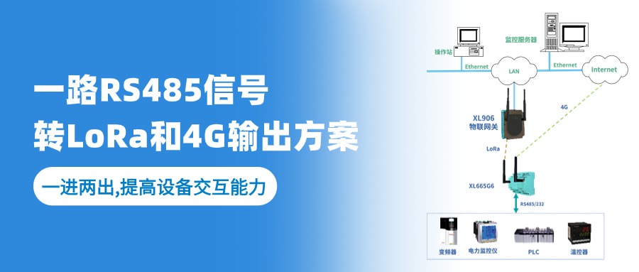 選擇XL665多路通信模塊,將1路RS485信號(hào)轉(zhuǎn)換成一路LoRa和一路4G輸出信號(hào)。